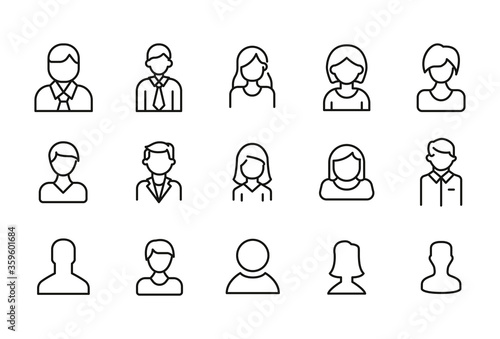 Astronaut woman in helmet with eyes closed, black and white vector, linear illustration icons set.