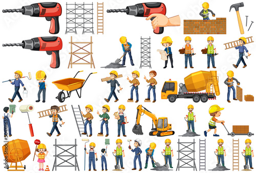 African architect and technician and builders and engineers and  mechanics People teamwork ,Vector illustration cartoon character.