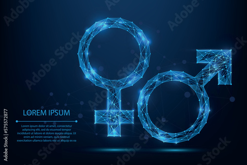 Abstract mesh line and point male and female symbols. Low poly wireframe sex concept. Polygonal vector futuristic illustration