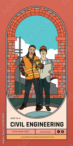 Indonesian civil engineering hand drawn illustration design layout for social media post