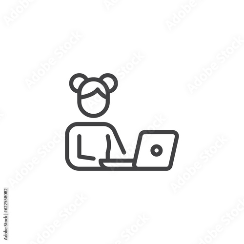 Woman User Icon - Laptop, Computer, Device, Global Network User Icon in Vector Illustration
