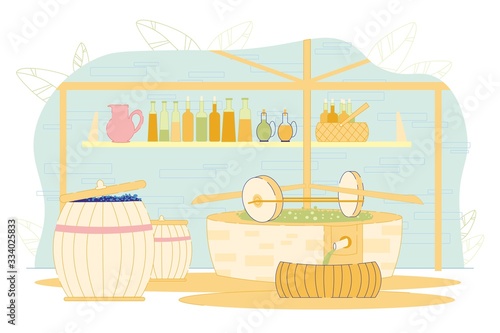 Olive oil processing automation equipment, flat vector illustration isolated.