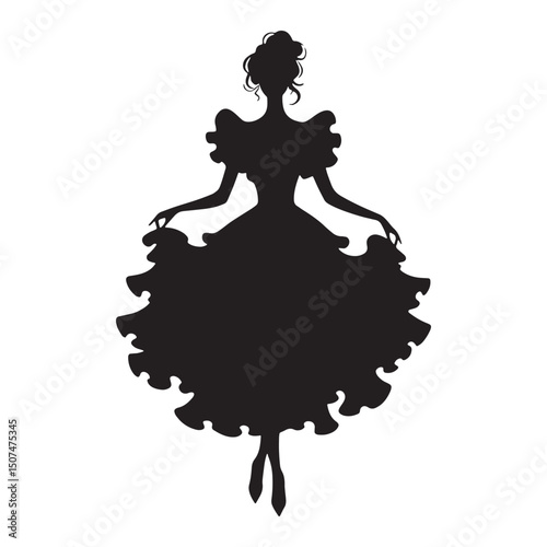 Elegant Black Silhouette of a Woman in a Flowing Gown.
