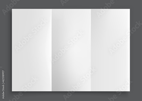 Set of white folded paper sheets. Double gate fold. Vertical pages. Blank booklet. Four panel accordion fold