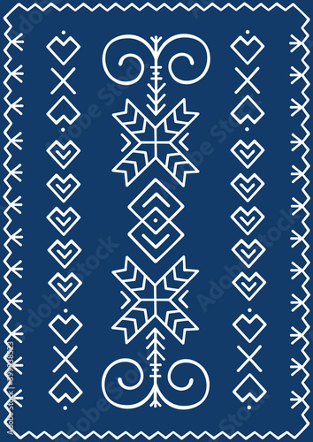 Vector illustration of Ukrainian ornament in ethnic geometric style, identity, vyshyvanka, embroidery for print clothes, websites, banners. Background, copy space, frame