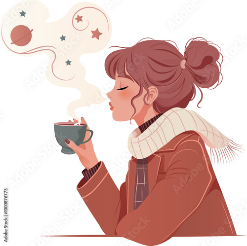 Young woman enjoying a fragrant coffee moment of serenity and relaxation