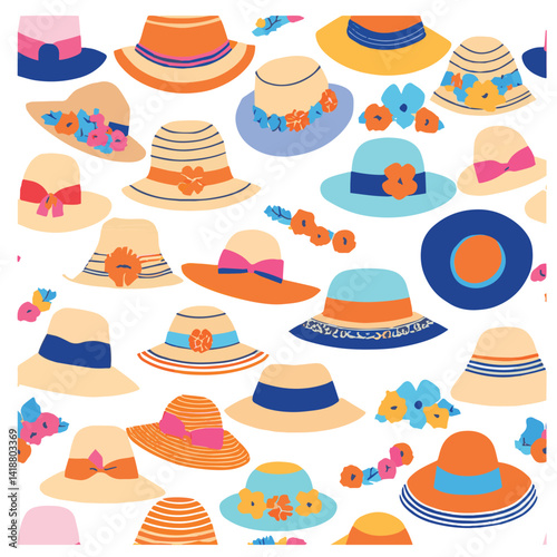 Summer Hats vintage collection for elegant men,woman, female and ladies. hand drawn warm cap, doodle headdress accessories vector isolated set.
