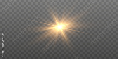 Set of light effects golden glowing light isolated on transparent background. Solar flare with rays and glare. Glow effect. Starburst with shimmering sparkles.