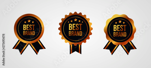 Best seller sticker label set with gold medal. Silver and red badge for product label.