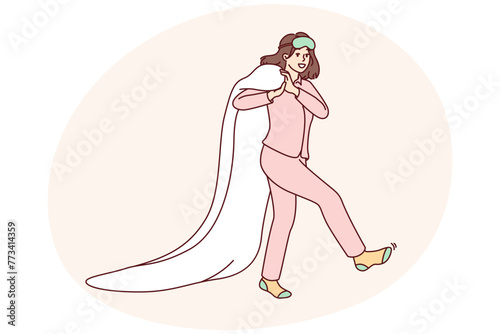 Beautiful woman sleeping happily on bed vector illustration. Sweet dream and good sleep concept