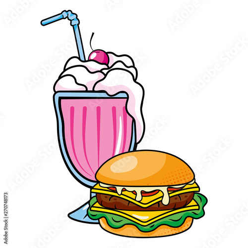 Colorful illustration of a burger with fries and a drink, showcasing a classic fast food meal, Burger and drink icon, hamburger and soda silhouette vector illustration, hamburger silhouette vector.