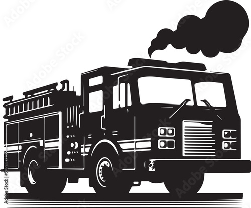 Fire Engine Truck Silhouette Vector Graphic For Emergency Services Illustration and Community Safety Awareness Campaigns Black and White Design