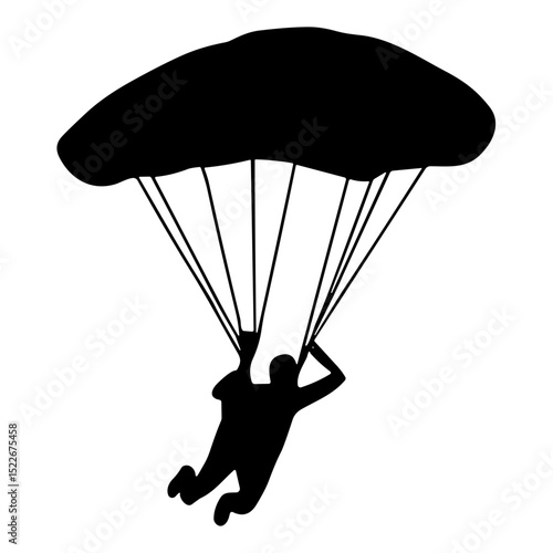 Silhouette Vector of Parachutist Landing with Open Parachute.