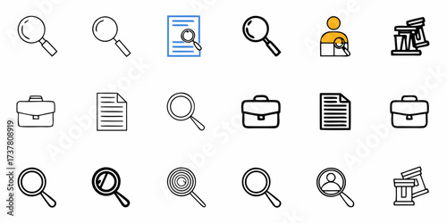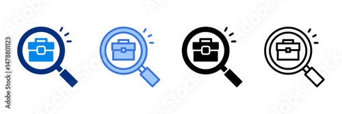 Job search icons representing employment opportunities, career growth, and professional recruitment, perfect for illustrating job boards and career advice platforms