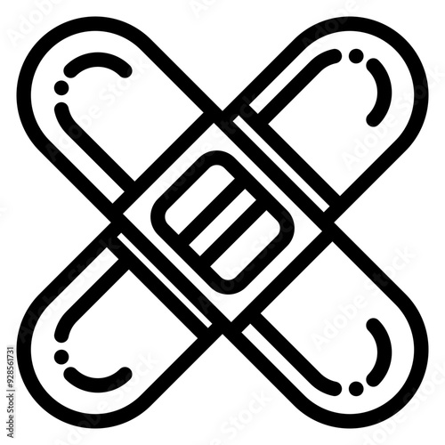 Crossed Band-Aid Icon - Black and White Medical Symbol
