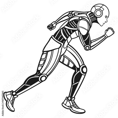humanoid defense robots with hydraulic tubes and chest plates black and white vector.eps