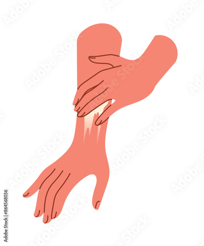 Hands present luxurious cosmetic cream containers for skincare and beauty routines. flat vector illustration