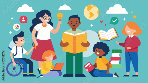 An inclusive school has started using storytelling as a form of teaching for students with intellectual disabilities engaging them in interactive. Vector illustration