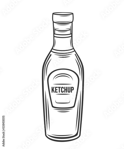 Black and white sketch of an empty glass bottle with corkscrew cap. Vector retro hand drawn illustration.