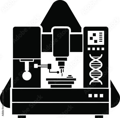 Microscope icon black and white vector illustration, science laboratory equipment design, biology research tool, education and medical experiment symbol