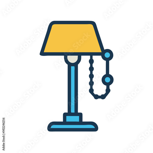 Yellow lampshade table lamp with curved cord and base.