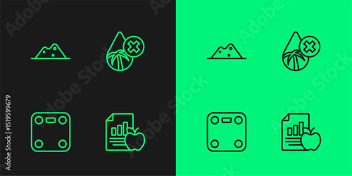 Set Bathroom scales, Kcal, Salt and Diet plan icon. Vector