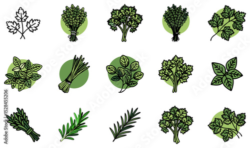 Culinary herbs and vegetables collection, perfect for healthy cooking designs, vibrant and fresh, vector illustration, ideal for food blogs and recipe sites