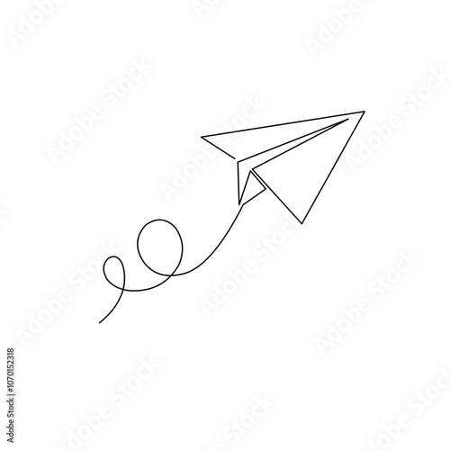 Paper plane continues one line drawing in a minimal style isolated outline vector illustration