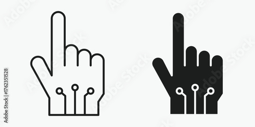Robot hand icon in outline, solid, and color style on a light gray background, perfect for AI, automation, robotics, and future tech projects, available in EPS vector format.