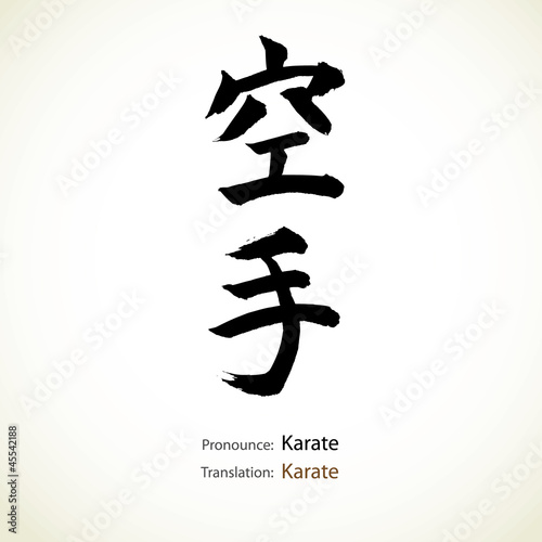 Martial arts silhouette character logo illustration. Foreign word in japanese means Karate.