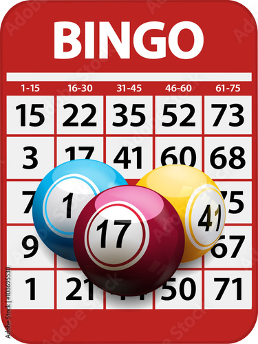 Illustration of bingo game card and balls