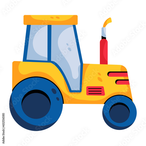 Vector tractor & cultivator. Tillage. Isolated illustration