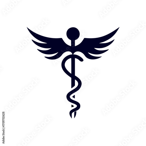 Medicine and Healthcare banner, Hippocratic symbol, Caduceus, logo mostly used in the medical field, copy space for text