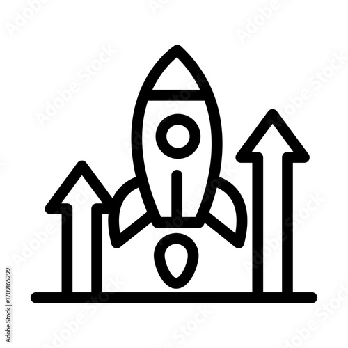 Minimalist rocket launch icon in linear style with simple astronaut theme
