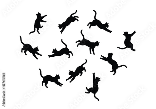 Goat silhouettes in various standing, walking, and jumping poses, farm animal illustration set for agriculture, wildlife, and design projects