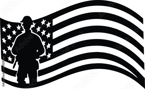 American flag with soldier silhouette patriotic vector design