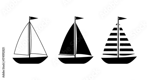Sailboat icons isolated on white background a collection of sailboat illustrations in various styles, representing maritime travel and nautical themes