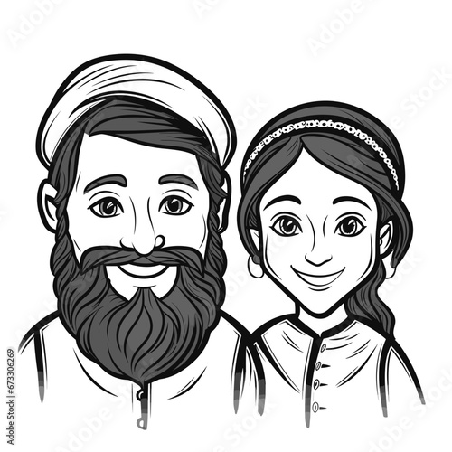 Indian couple hand-drawn comic illustration. Indian couple. Vector doodle style cartoon illustration