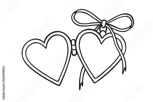 vector illustration of a heart, Outline drawing heart locket line clipart symbol, Vector art of two heart shaped locket with a bow