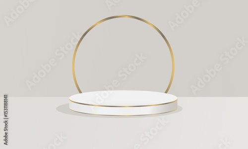 3D cream round steps podium pedestal background in empty clean room with window lighting. Minimal empty mockup abstract product display presentation, Stage showcase. Platforms vector geometric design.