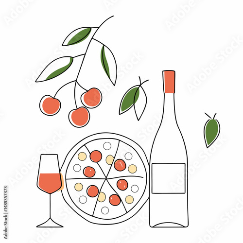 Food ingredients mixing on a bowl vector illustration with simple line design