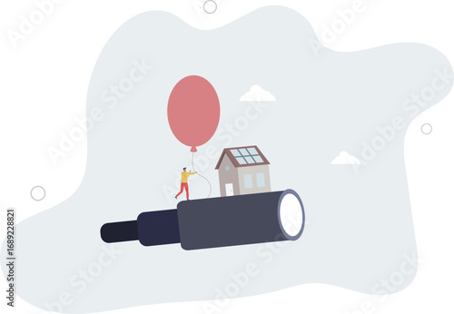 House mortgage interest rate rising up, home loan impact from inflation, real estate price bubble or housing investment opportunity concept.life and employment of people.