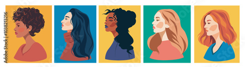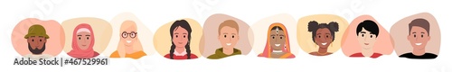 Women's group, set of avatars for social networks girls women of different nationalities and skin colors and hairstyles. Flat vector illustration for icons, avatars, badges