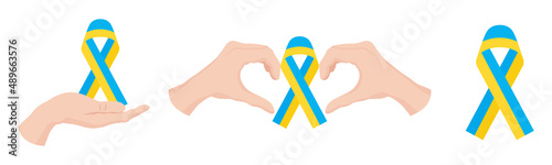 Żółta i niebieska wstążka układająca się w serduszko w kolorze flagi Ukrainy.