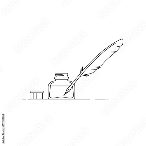 Minimalist black and white drawing of a desk with a nearby lightbulb, highlighting innovative ideas. Ideal for creativity, innovation, office themes, brainstorming, inspiration, modern design