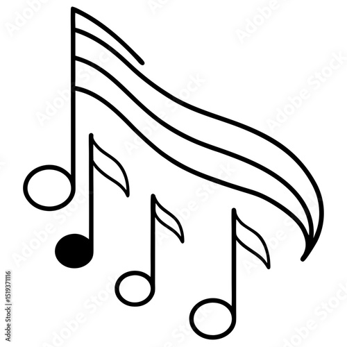 Musical notation featuring lines and a note. Editable stroke. Vector illustration