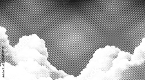 Halftone cloud background – black and white dotted texture with comic-style sky effect vector Illustration.