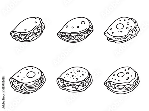 Omelet icons pack. Set of black and white liner stroke symbols