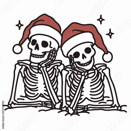 Skeleton whispering wish to star Winter Solstice. Cartoon Minimal Clipart Silhouette Vector Illustration Line Art Illustration. Bony figure voicing hope toward celestial body yule season.