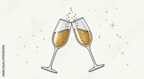 Line Art Countdown Clock with Champagne Glass Celebration Illustration